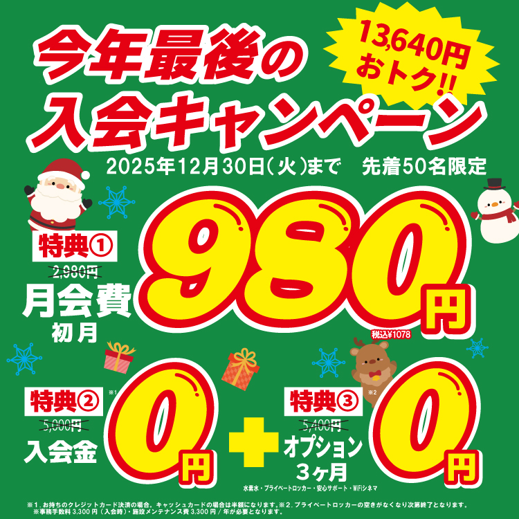低価格の月会費なのに、『充実した施設』♪